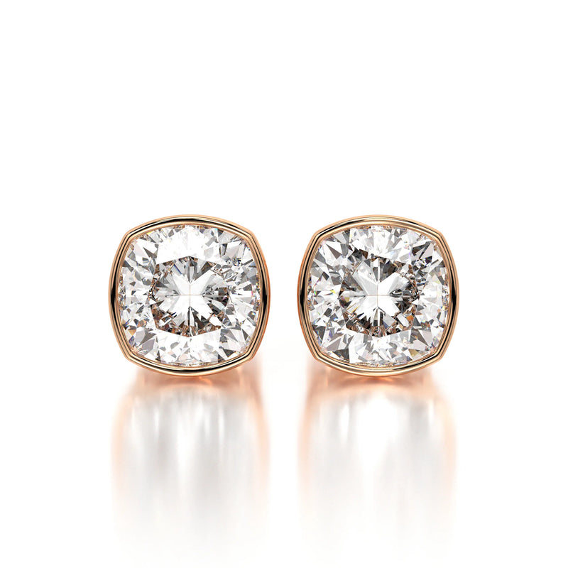 The 1 CTW Cushion Lab Grown Diamond Bezel Stud Earrings Set is a timeless earrings featuring a Cushion lab-grown diamond with superior clarity and radiance.