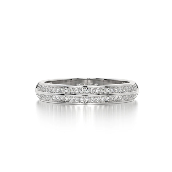 The Aurora Pavé Band is a stunning symbol of timeless elegance, featuring brilliant round-cut lab-grown diamonds with D-F color and VVS clarity. Designed with a delicate pavé setting, this wedding band radiates brilliance and sophistication. Perfect for weddings, anniversaries, or as a luxurious standalone piece, this band is crafted for those who appreciate refined beauty and ethical luxury.