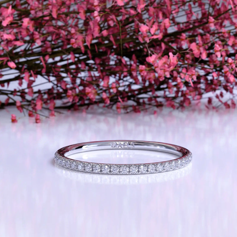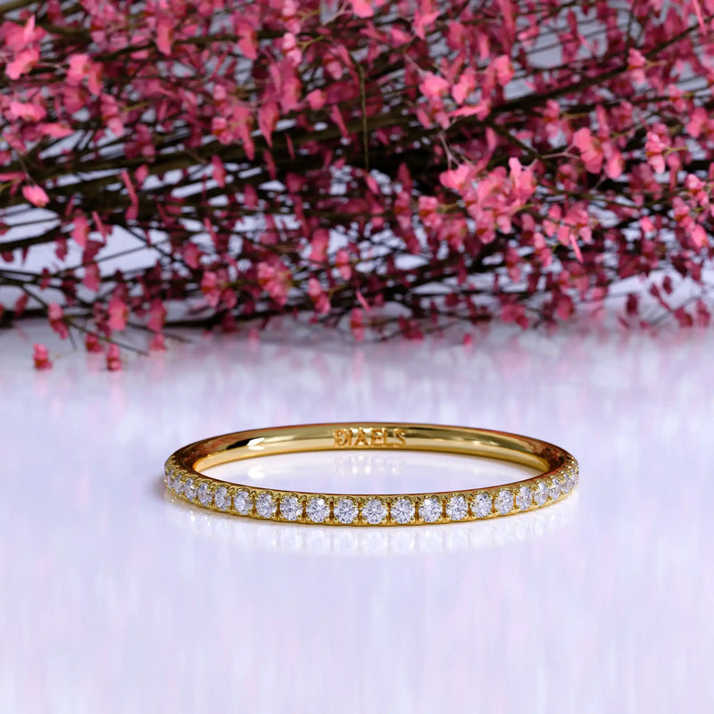 The Eterna Band is a delicate diamond wedding band designed to complement your engagement ring. Featuring round lab-grown diamonds with a 0.20 CTW, this stackable band is perfect for adding brilliance to your bridal set.