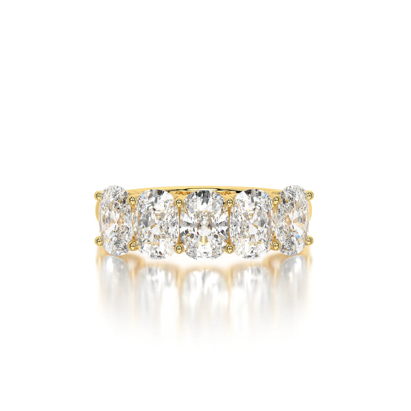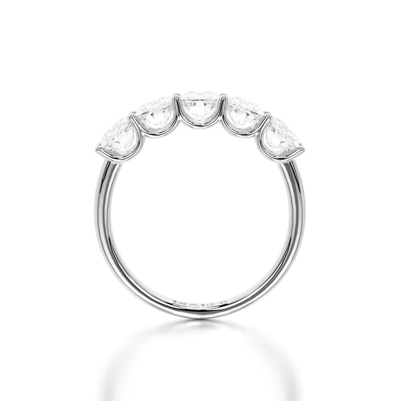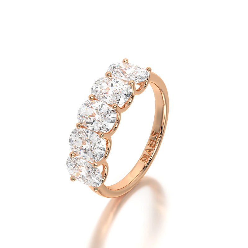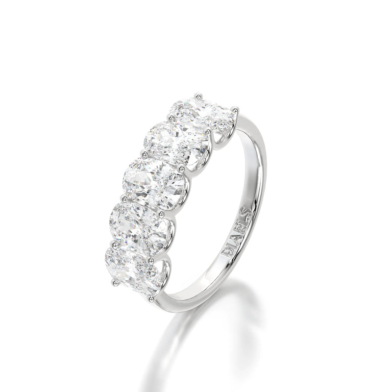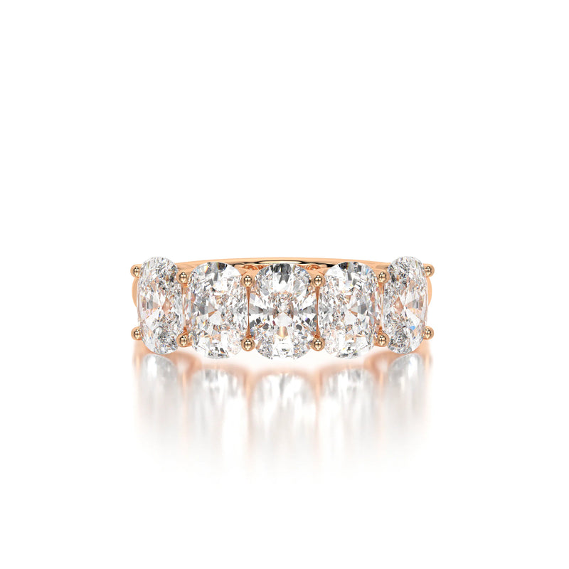The Floating Five Elongated Cushion Band is a stunning wedding band featuring 3 carats of elongated cushion-cut lab-grown diamonds with D-F color and VVS clarity. Designed with a modern floating setting, this band enhances each diamond’s brilliance while maintaining an elegant and timeless appeal. Perfect as a wedding band or a sophisticated standalone piece.