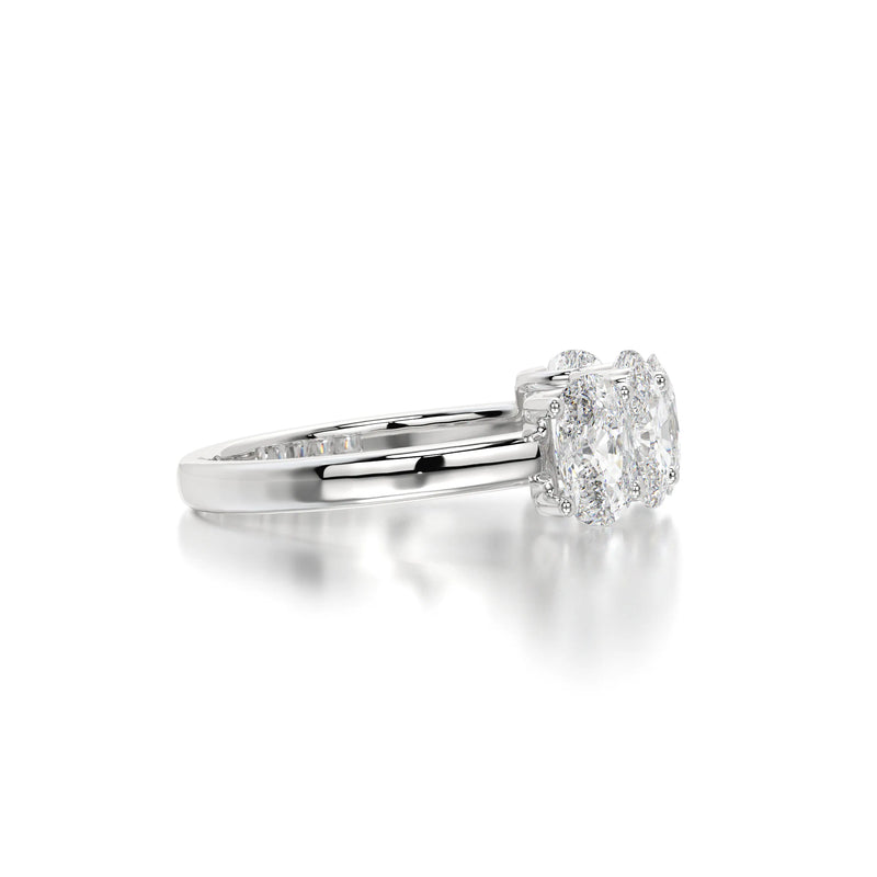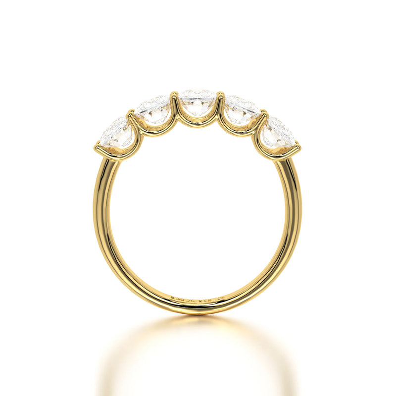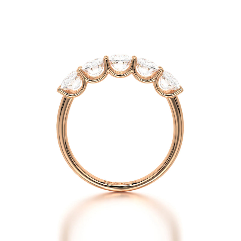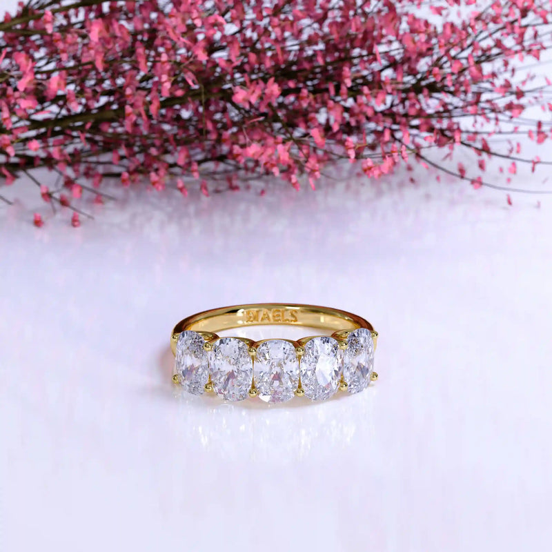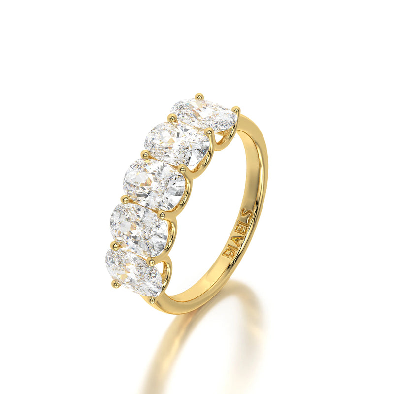 The Floating Five Elongated Cushion Band is a stunning wedding band featuring 3 carats of elongated cushion-cut lab-grown diamonds with D-F color and VVS clarity. Designed with a modern floating setting, this band enhances each diamond’s brilliance while maintaining an elegant and timeless appeal. Perfect as a wedding band or a sophisticated standalone piece.