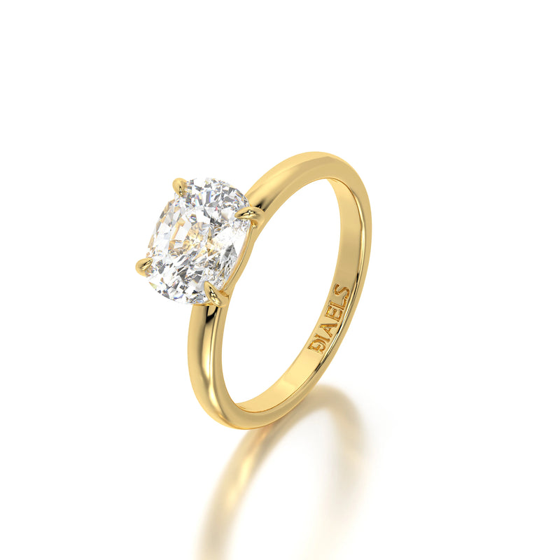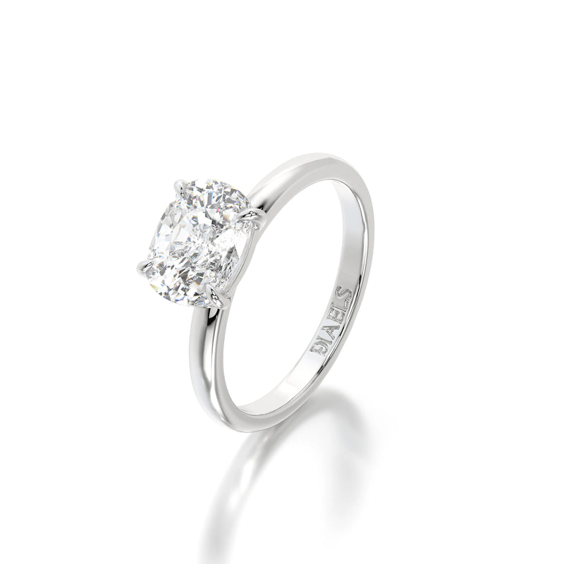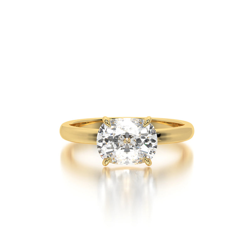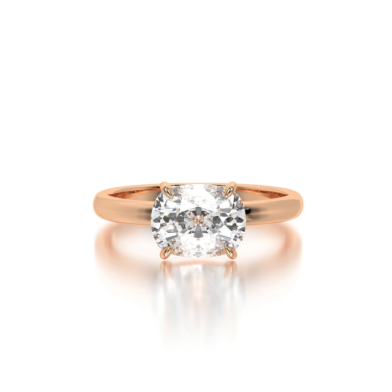 The Horizontal Elongated Cushion Engagement Ring by Diaels – A refined solitaire ring featuring a 3CT elongated cushion-cut lab-grown diamond set in a distinctive horizontal orientation. With exceptional D-F color and VVS clarity, this ring exudes brilliance, elegance, and ethical craftsmanship, making it a timeless choice for a meaningful engagement.