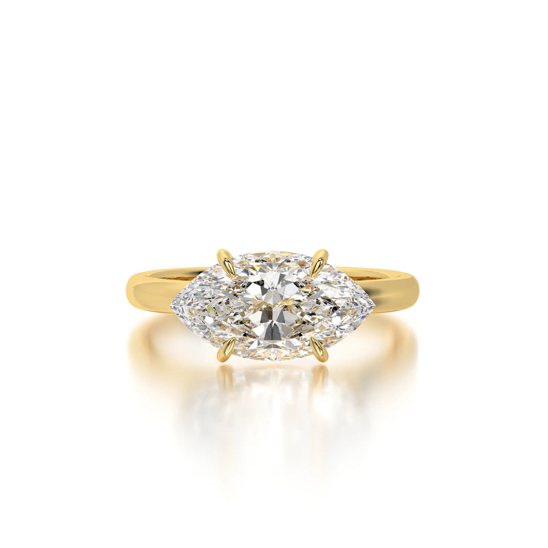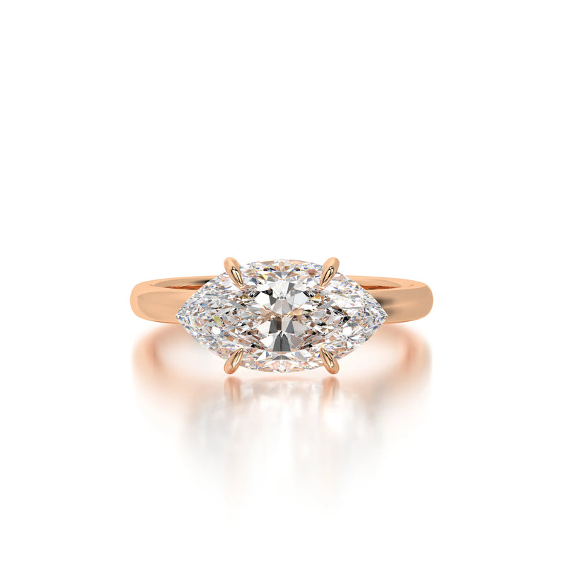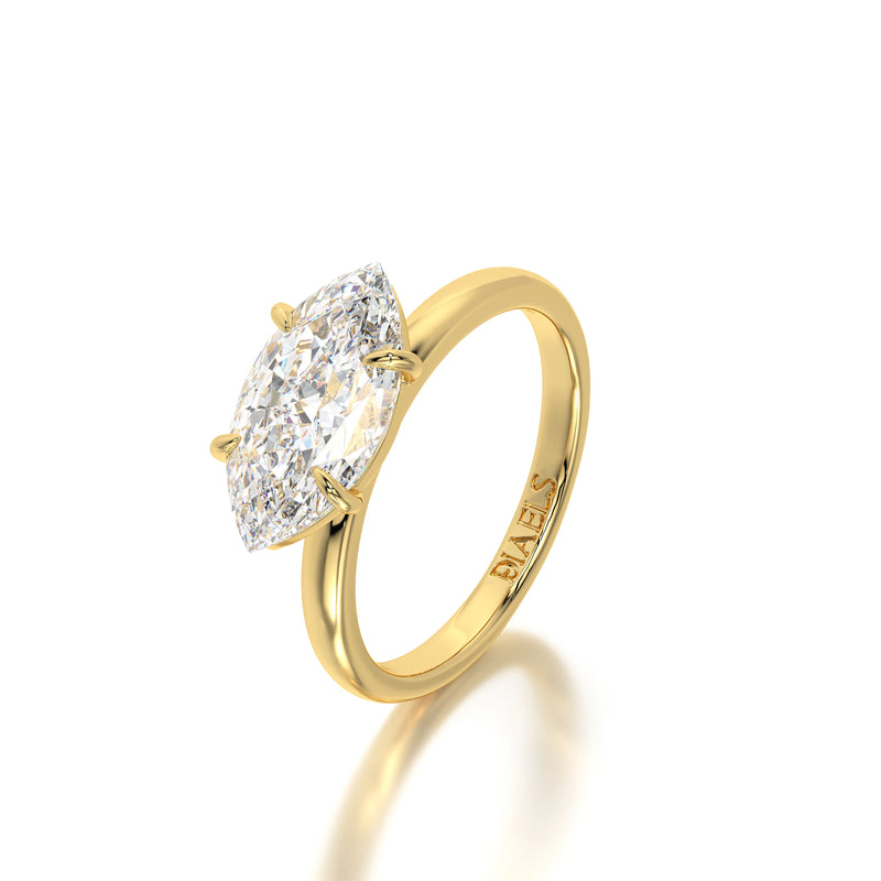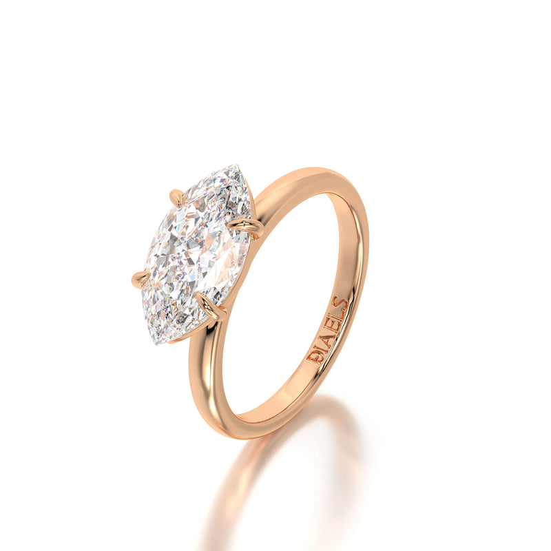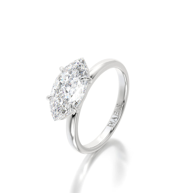 The Horizontal Marquise Engagement Ring by Diaels – A striking solitaire ring showcasing a 3CT marquise-cut lab-grown diamond set in a unique horizontal orientation. With exceptional D-F color and VVS clarity, this ring offers a modern twist on classic brilliance, making it an elegant and ethical choice for a timeless engagement.