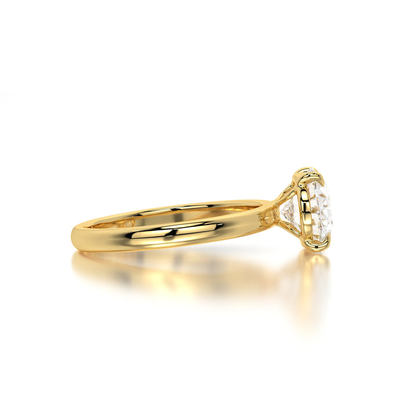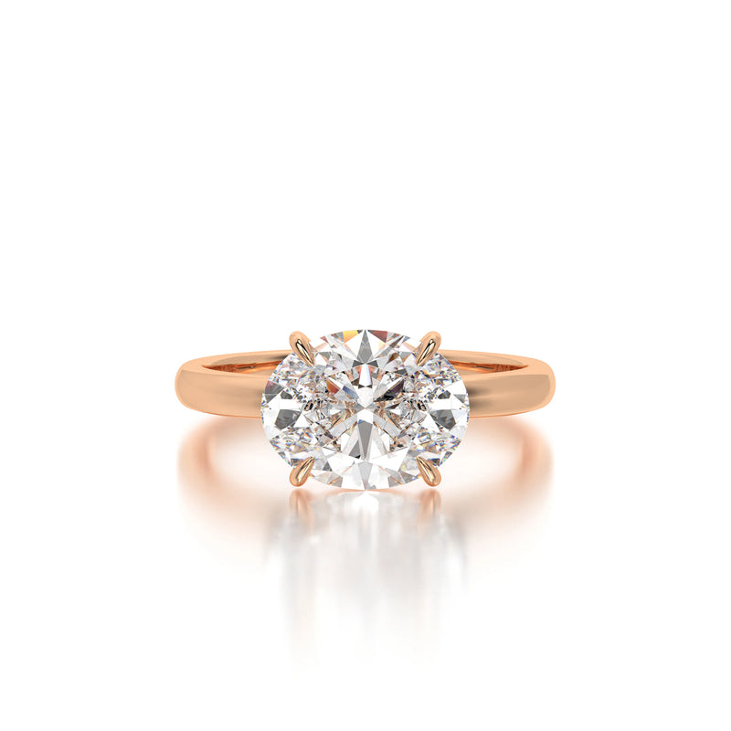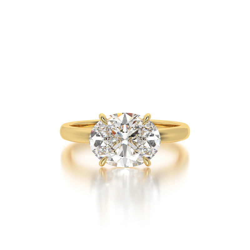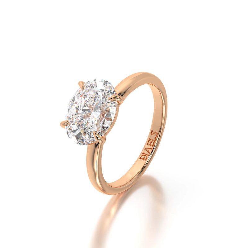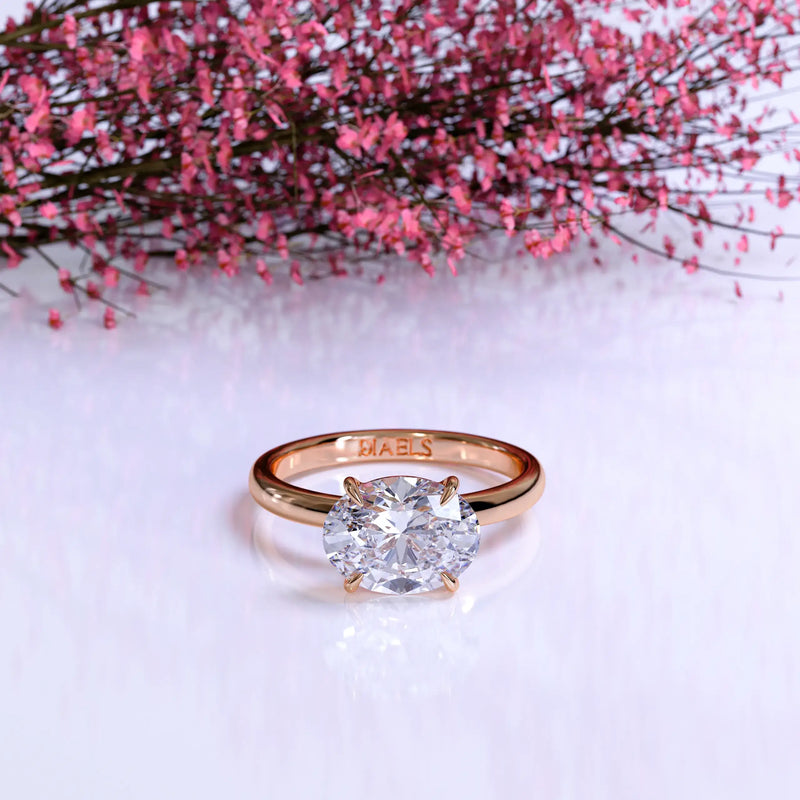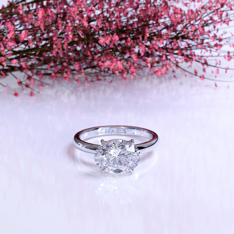 The Horizontal Oval Engagement Ring by Diaels – A captivating solitaire ring showcasing a 3CT oval-cut lab-grown diamond set in a distinctive horizontal orientation. With exceptional D-F color and VVS clarity, this ring embodies elegance, brilliance, and ethical craftsmanship, making it the perfect choice for a timeless engagement.