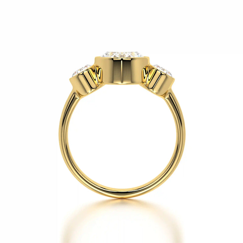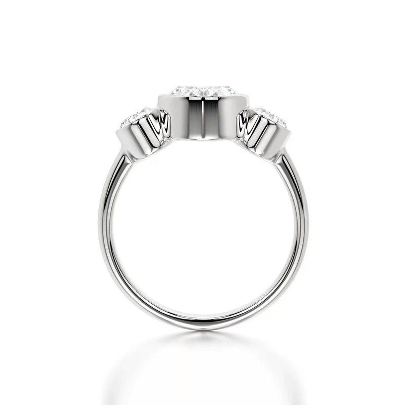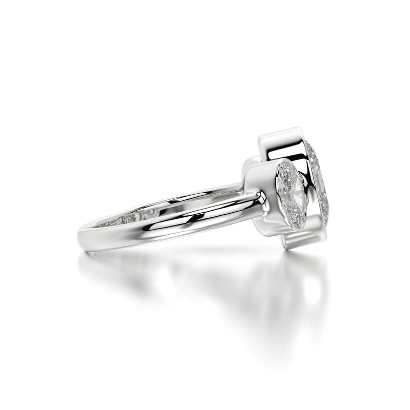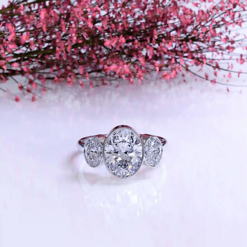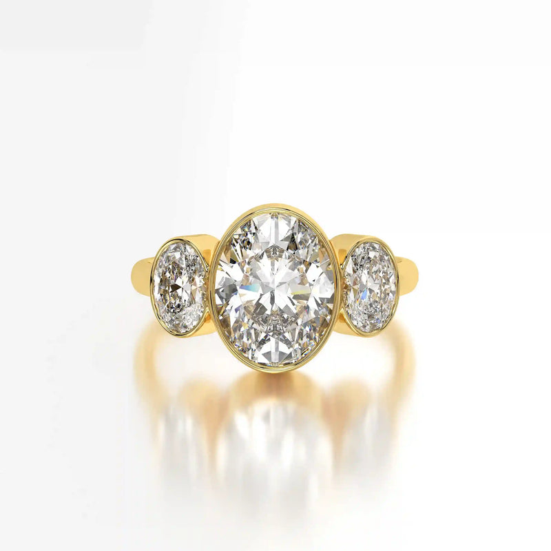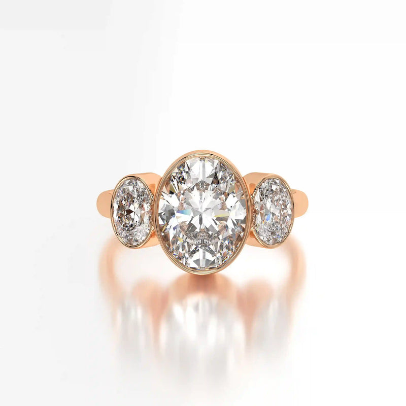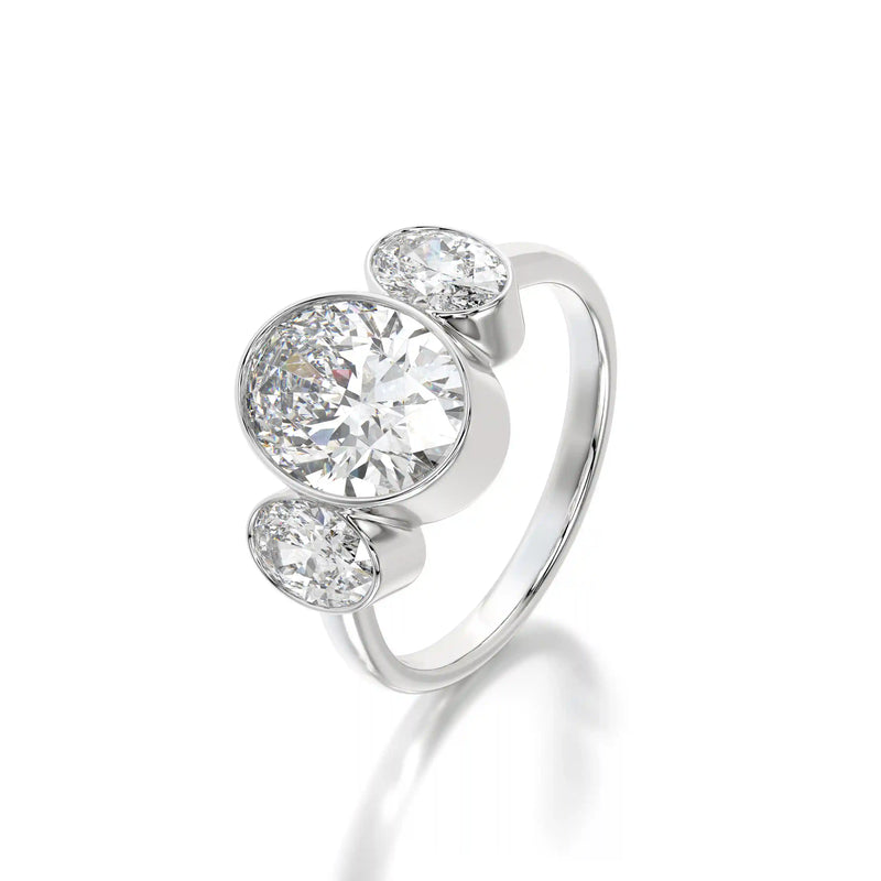 The Oval Trio is a breathtaking tribute to love, showcasing a mesmerizing oval diamond in a three stone pave setting. Every facet reflects brilliance, making this engagement ring the ultimate symbol of commitment.