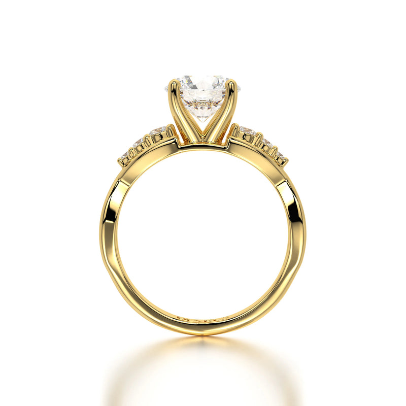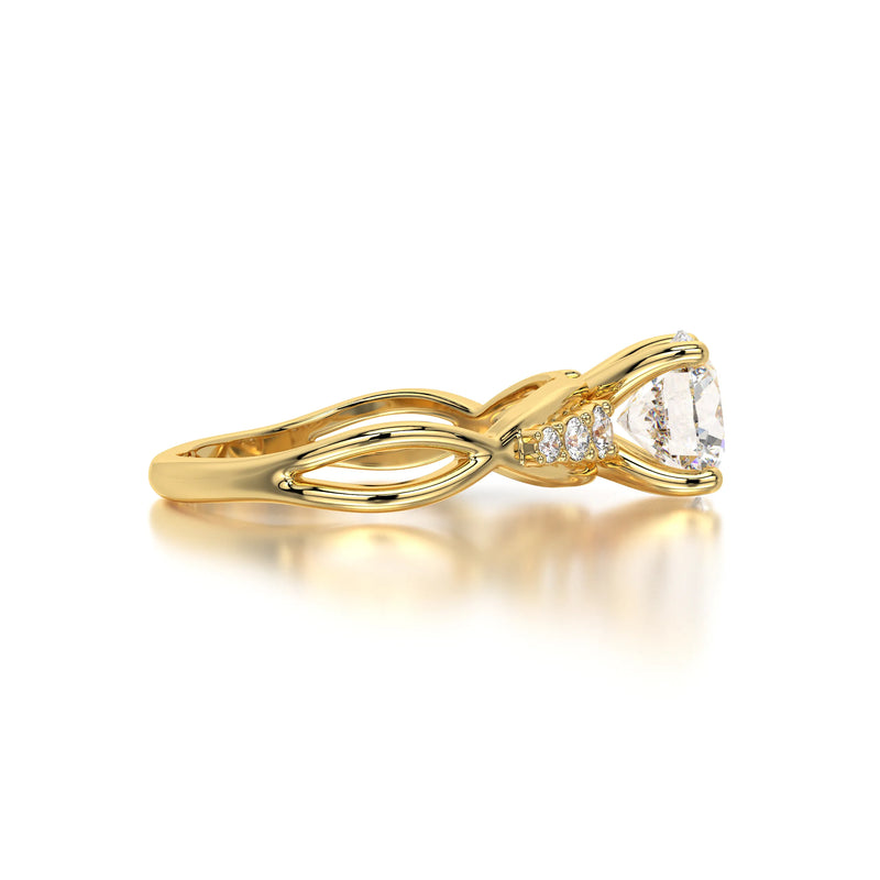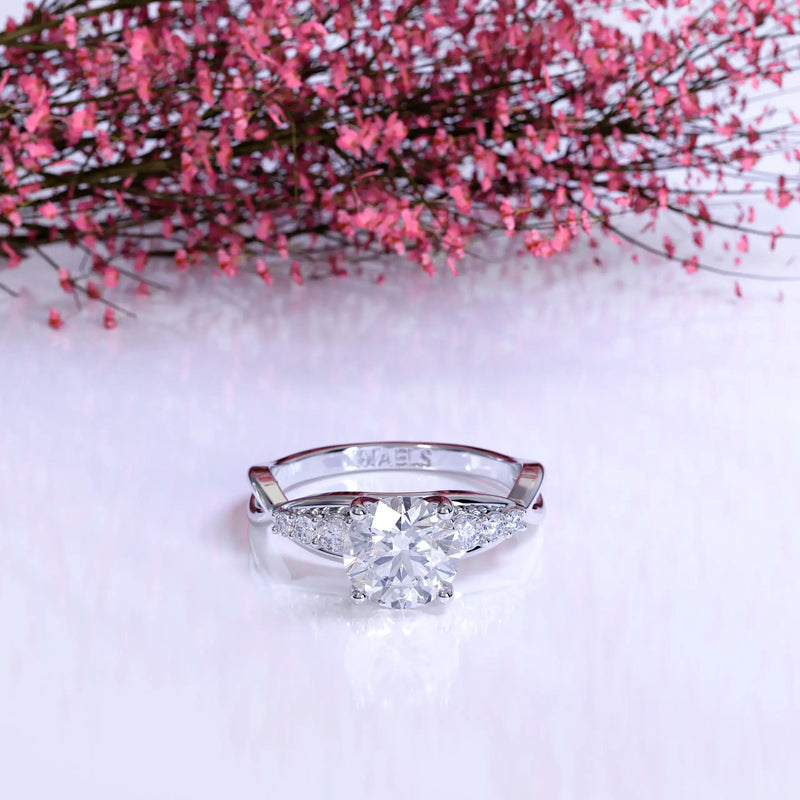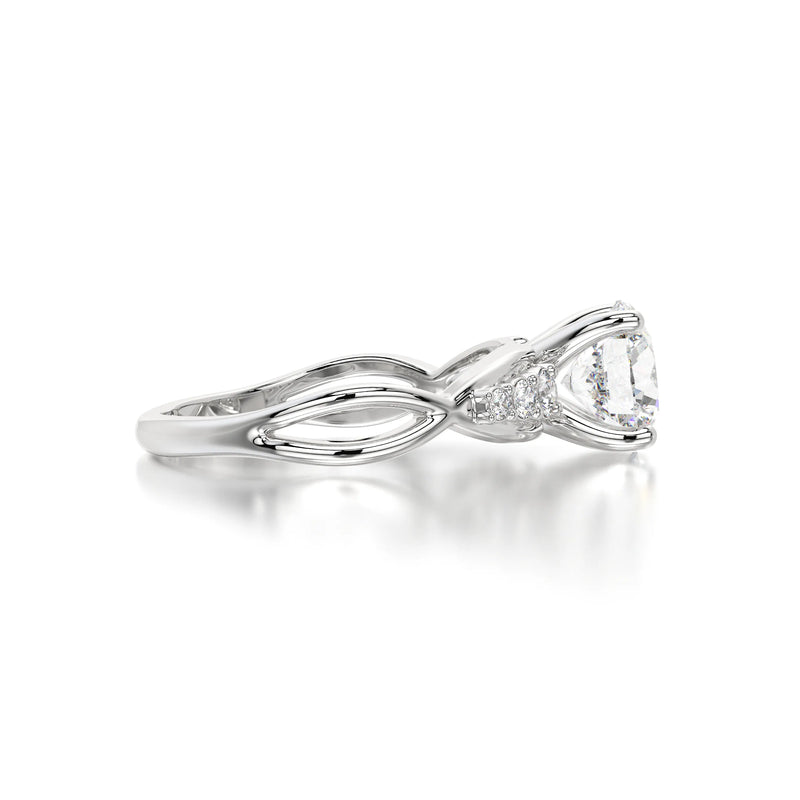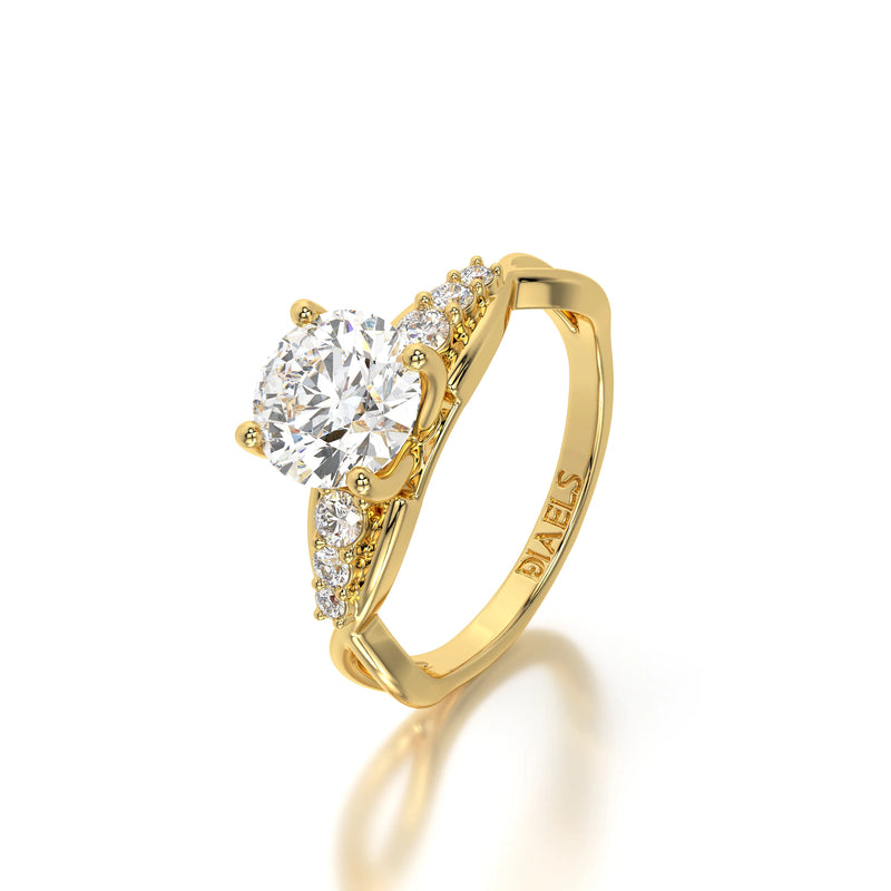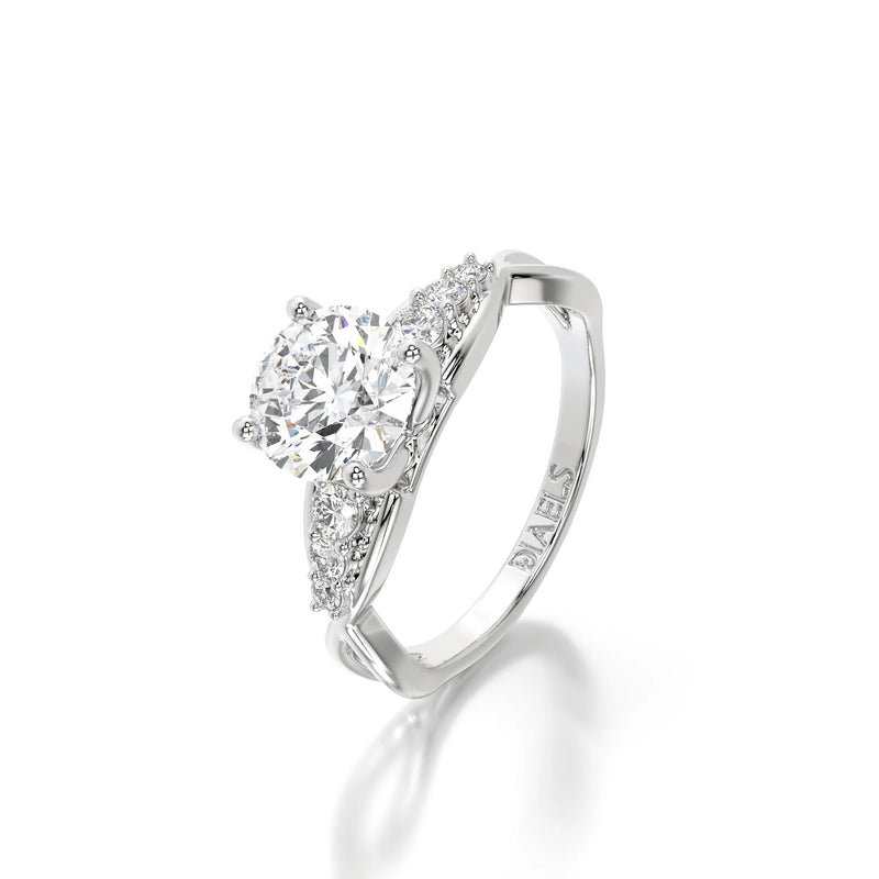 The Round Natural Wave Engagement Ring by Diaels – A masterpiece of timeless elegance, this solitaire engagement ring showcases a brilliant round-cut lab-grown diamond with exceptional D-E color and VVS/VS clarity. Designed for those who appreciate refined craftsmanship and ethical luxury, it is the perfect symbol of enduring love and commitment.