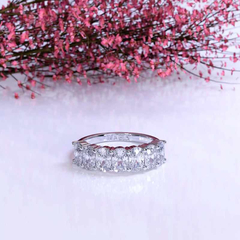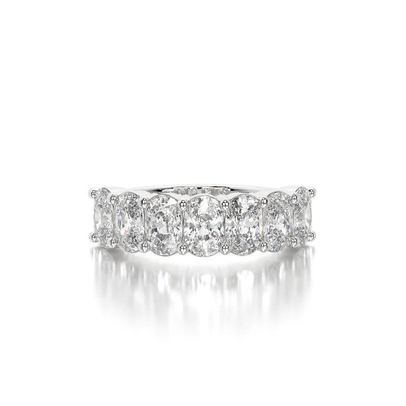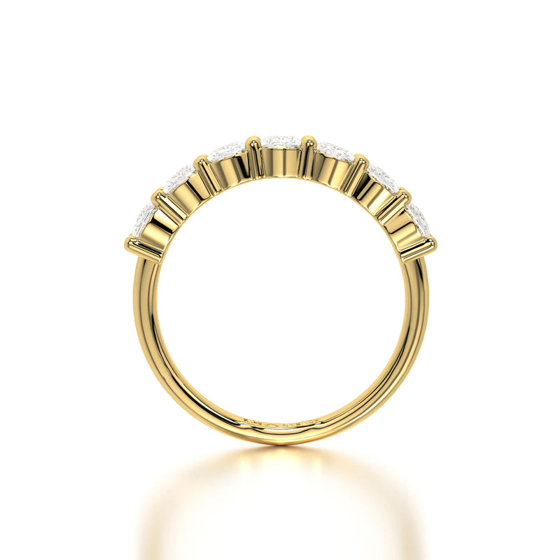The Seven Cushion Band is a stunning wedding band featuring 3 carats of cushion-cut lab-grown diamonds with D-F color and VVS clarity. Designed for timeless elegance, this band offers exceptional brilliance and sophistication, making it the perfect wedding band or a luxurious standalone statement.
