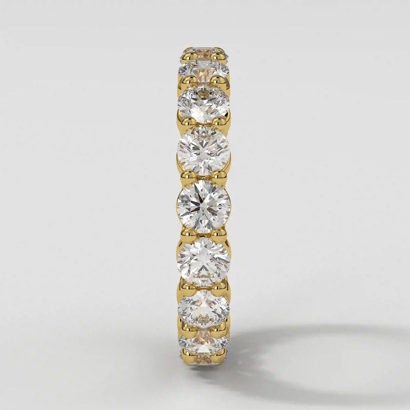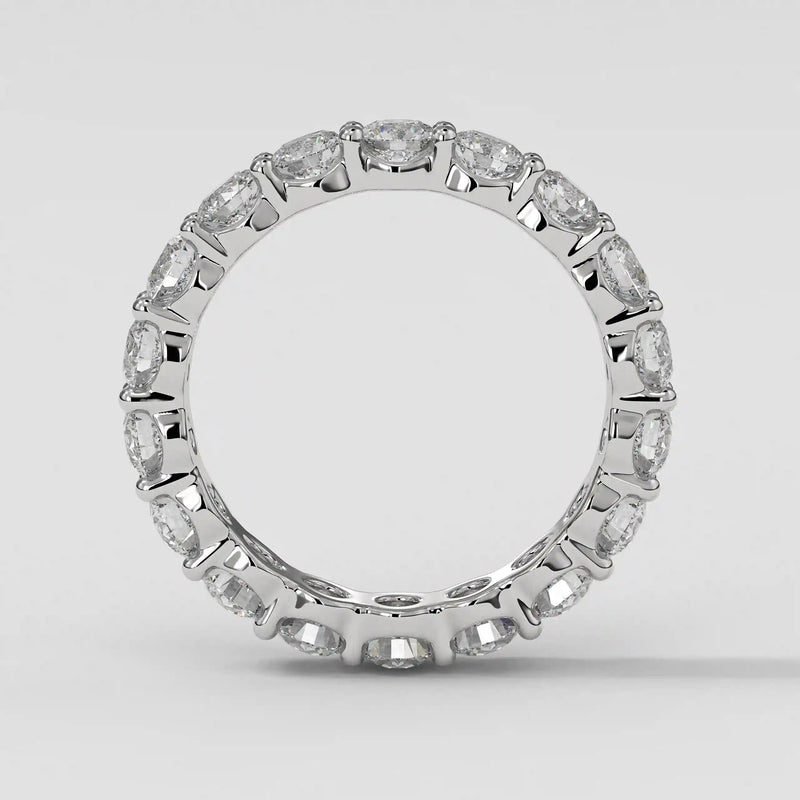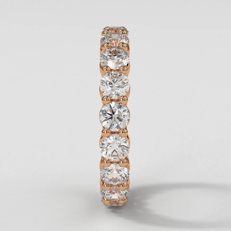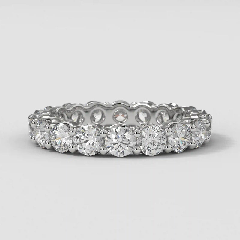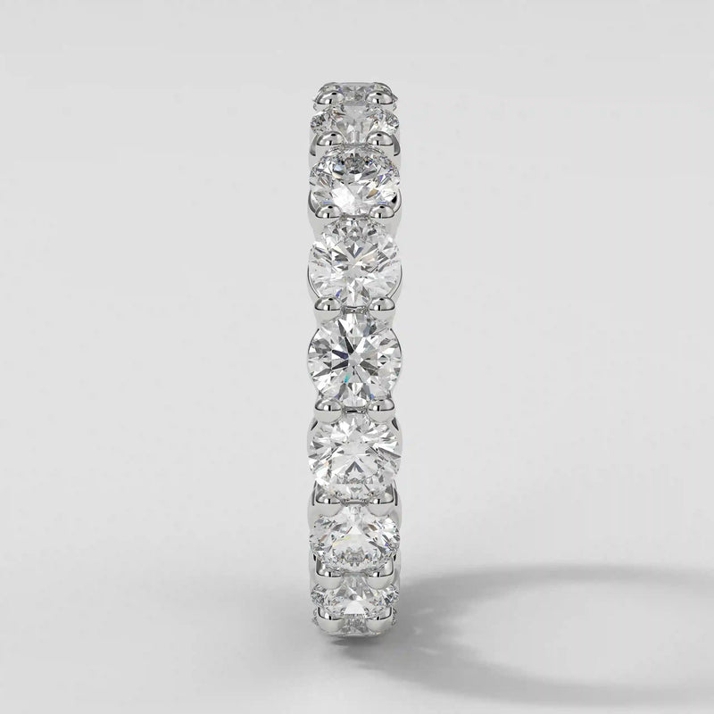 Indulge in the pinnacle of refinement with The Shared Prong Round Eternity, a stunning piece that seamlessly blends a luxurious design with a striking round silhouette.