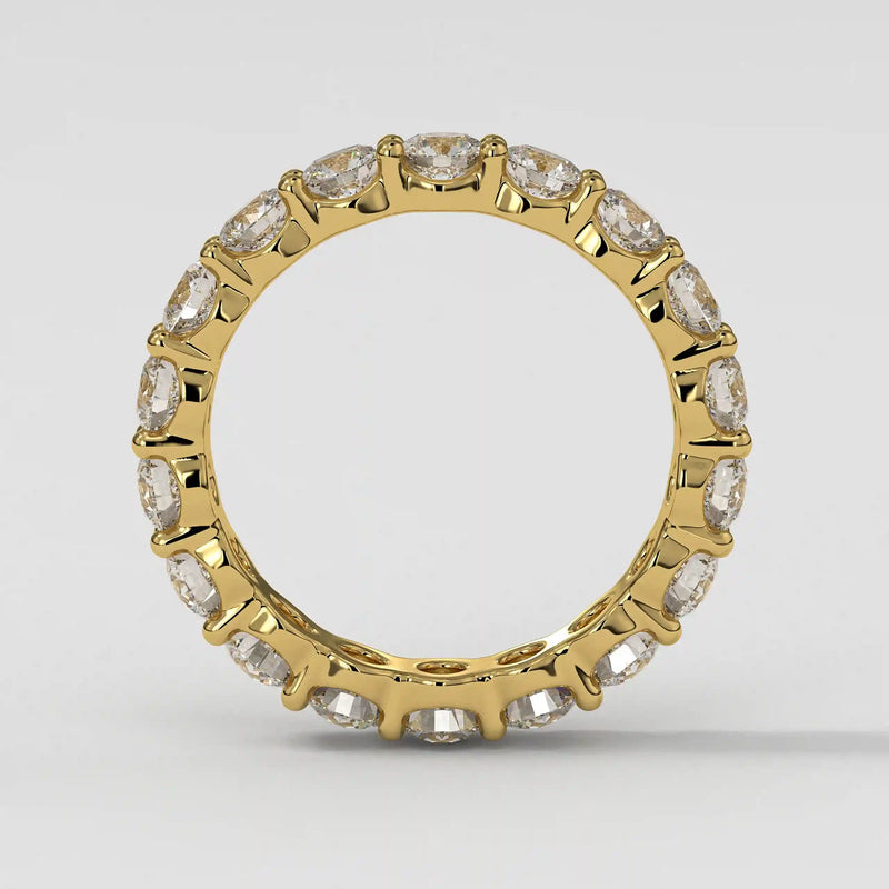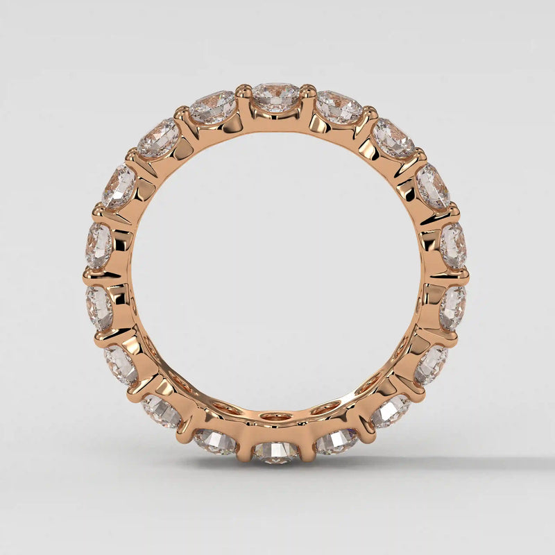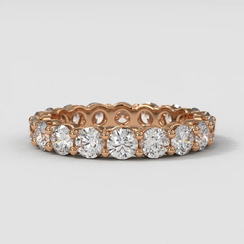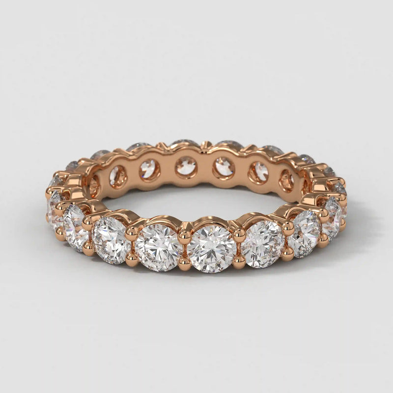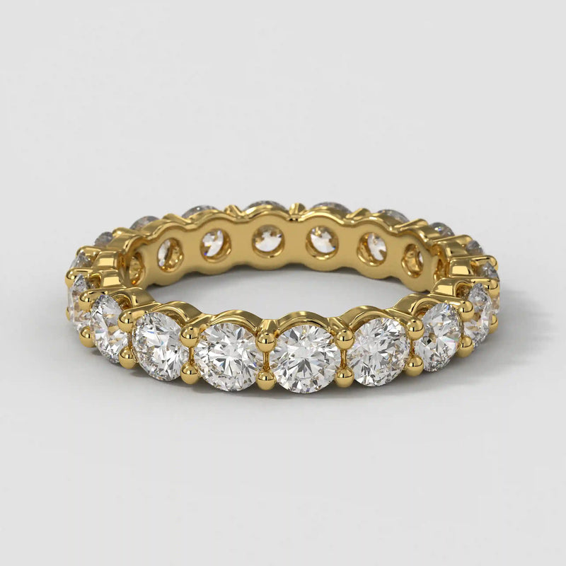 Indulge in the pinnacle of refinement with The Shared Prong Round Eternity, a stunning piece that seamlessly blends a luxurious design with a striking round silhouette.