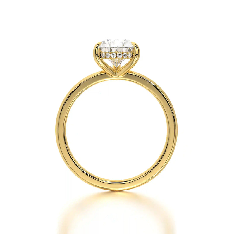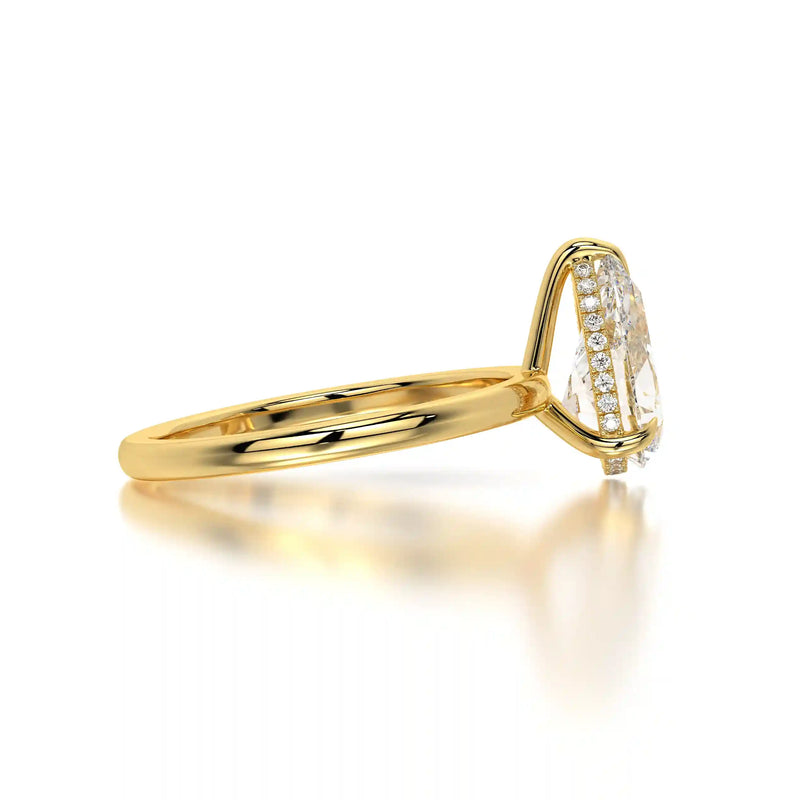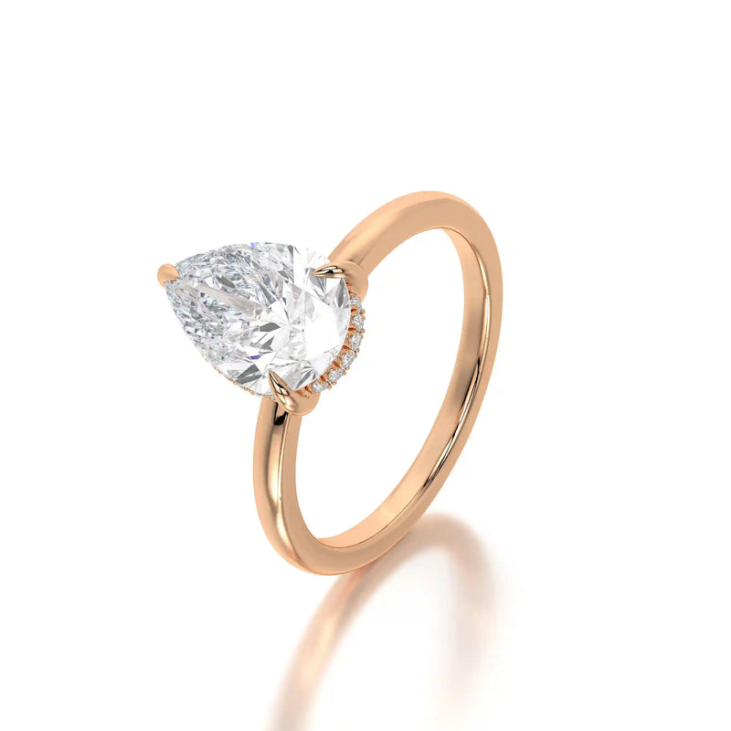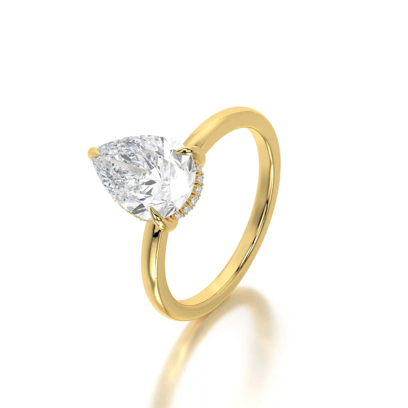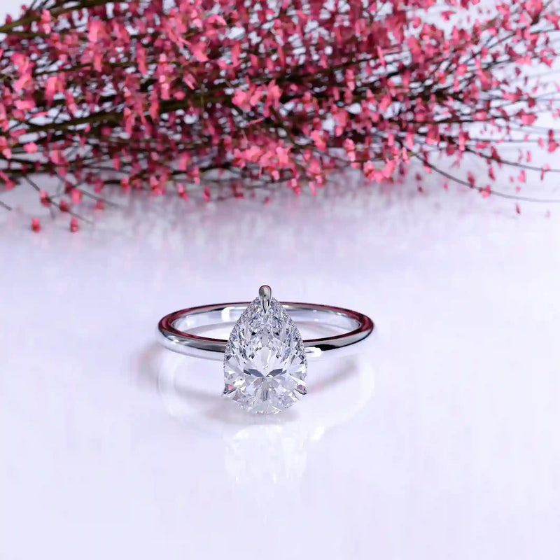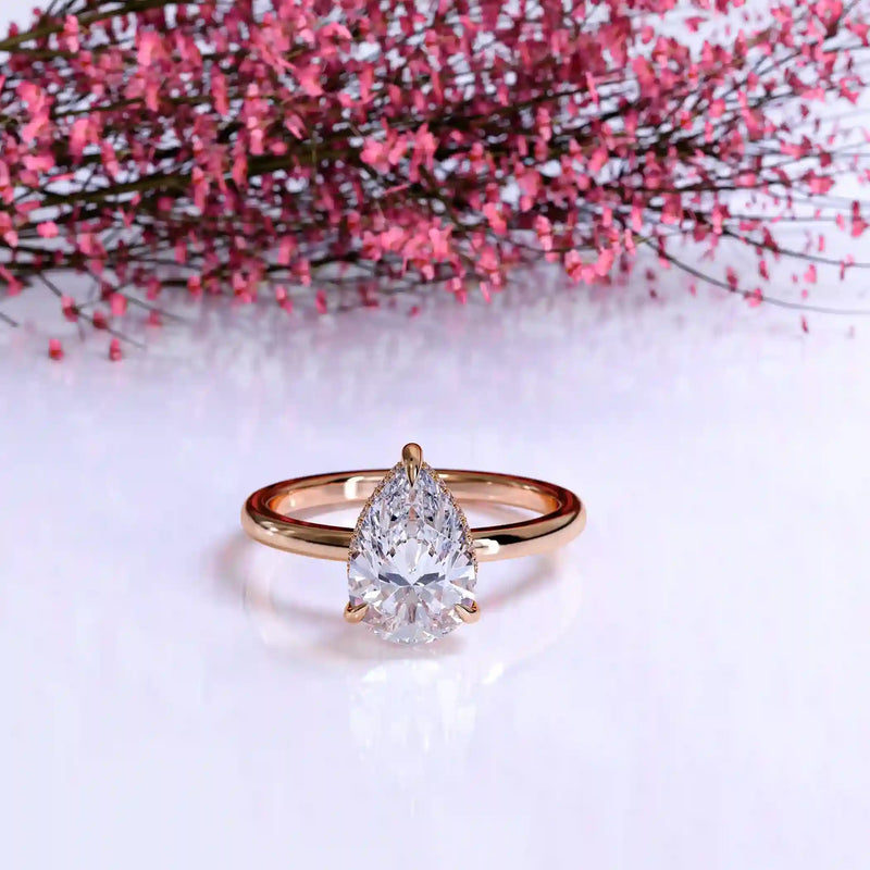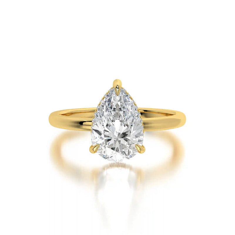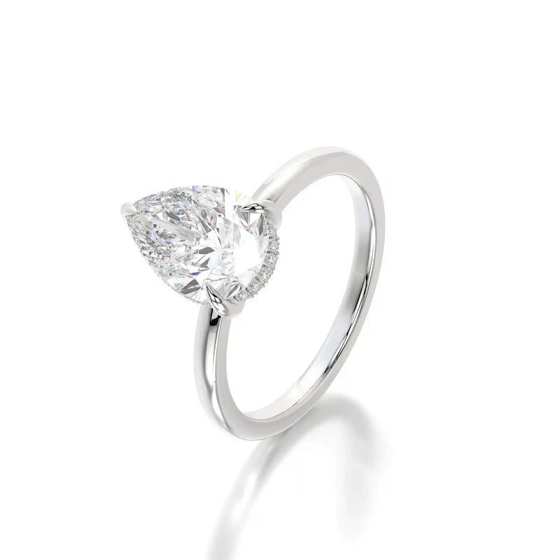 The Simple Pear is a breathtaking tribute to love, showcasing a mesmerizing pear diamond in a solitaire setting. Every facet reflects brilliance, making this engagement ring the ultimate symbol of commitment.