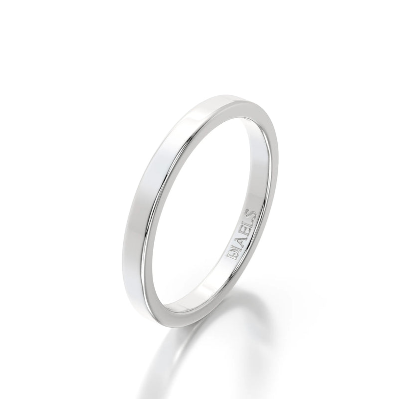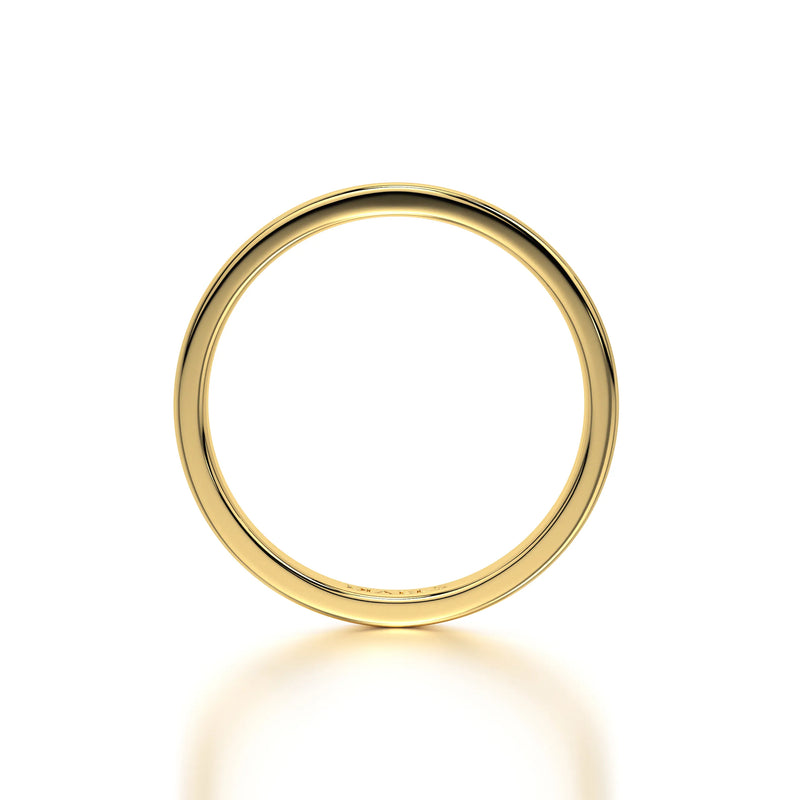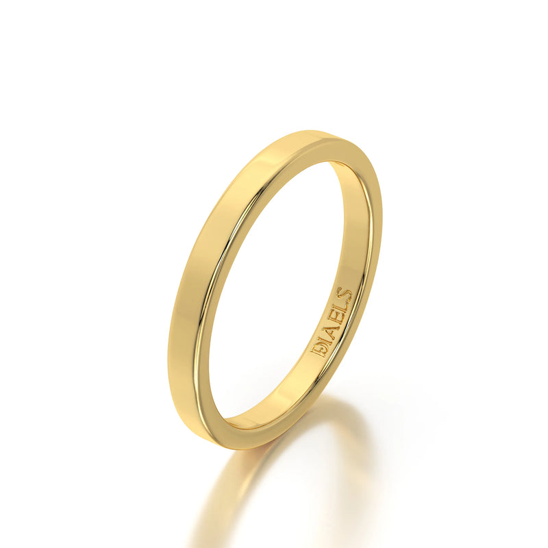 A sleek and timeless 2.4MM gold wedding band, ideal for stacking or wearing as a minimalist statement piece.