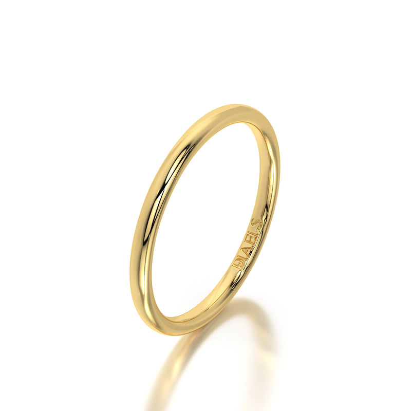 A sleek and minimal 2MM gold band, The Solis Band is designed for stacking, pairing, or wearing solo. A timeless wedding band or a delicate accent ring for everyday elegance.