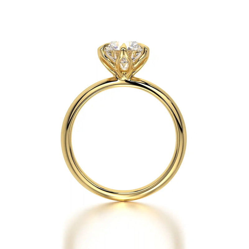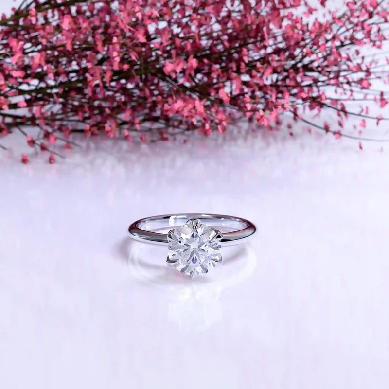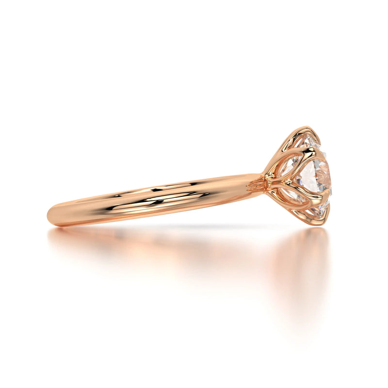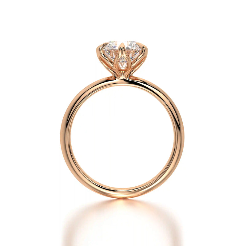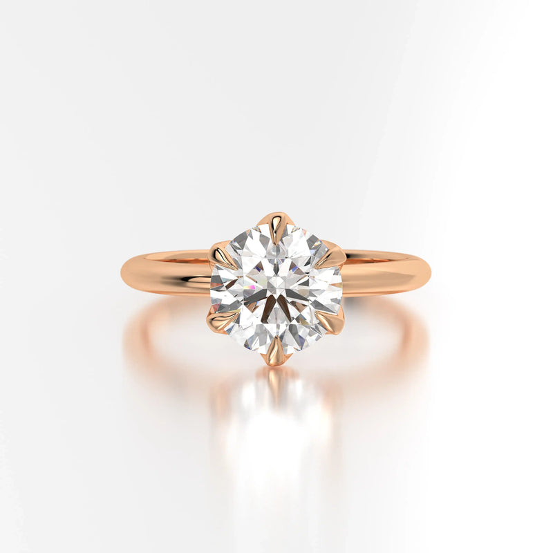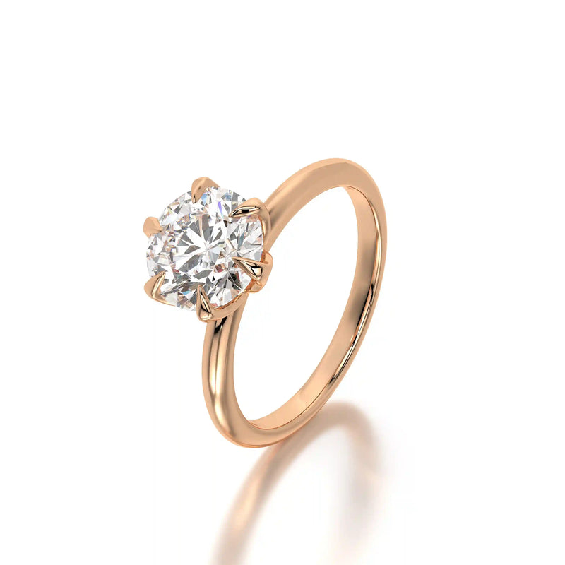 The Solitaire Rose is a breathtaking tribute to love, showcasing a mesmerizing round diamond in a solitaire setting. Every facet reflects brilliance, making this engagement ring the ultimate symbol of commitment.