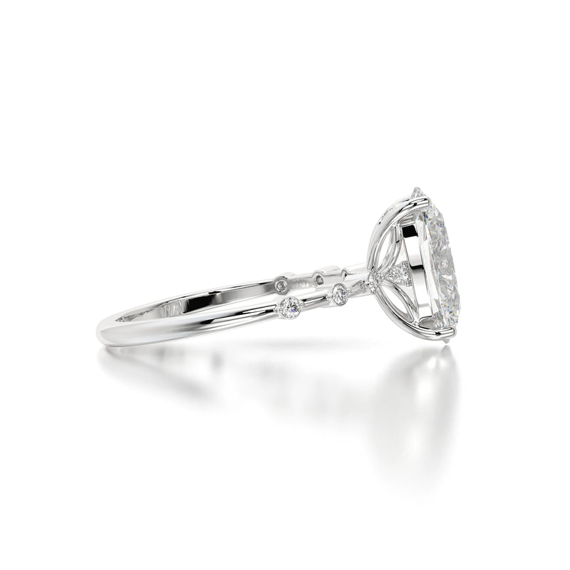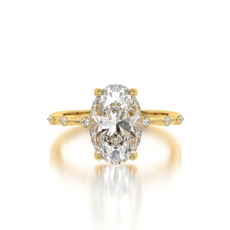 The Thin Pave Oval Engagement Ring is a stunning symbol of timeless elegance. Featuring a 3-carat oval-cut lab-grown diamond with D-F color and VVS clarity, this ring is set on a delicate pave band that enhances its brilliance. Designed for those who appreciate classic beauty with a modern touch, it is the perfect choice for a lifelong commitment.