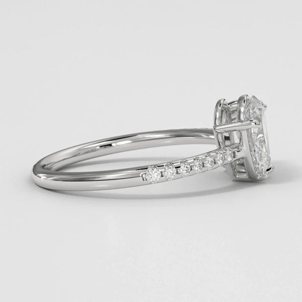 The Toi Et Moi Pear Emerald is a breathtaking tribute to love, showcasing a mesmerizing pear diamond in a pave setting. Every facet reflects brilliance, making this engagement ring the ultimate symbol of commitment.