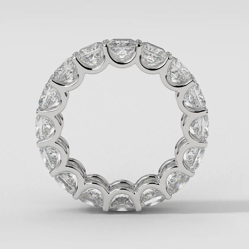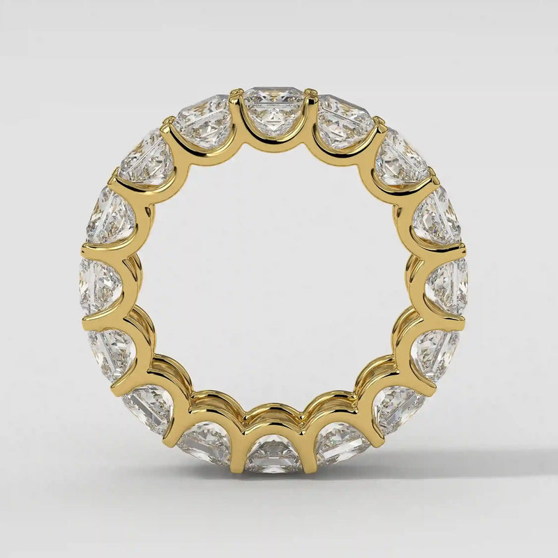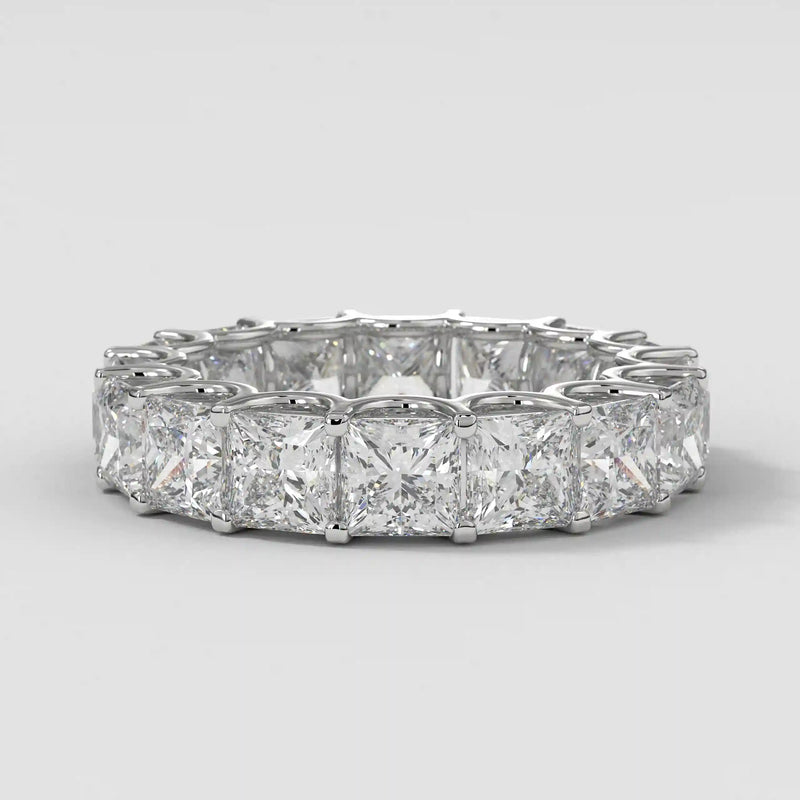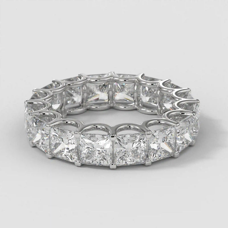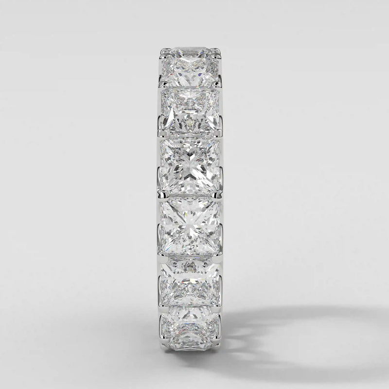 Discover the essence of luxury with The U Prong Princess Eternity Band, a stunning piece that seamlessly blends a luxurious design with a striking princess silhouette.