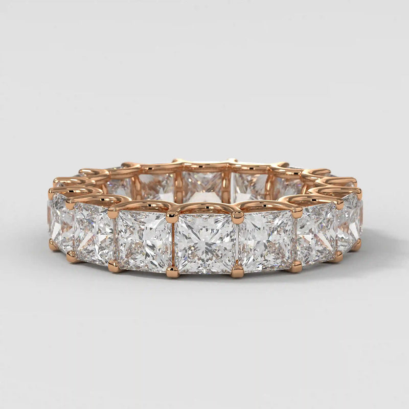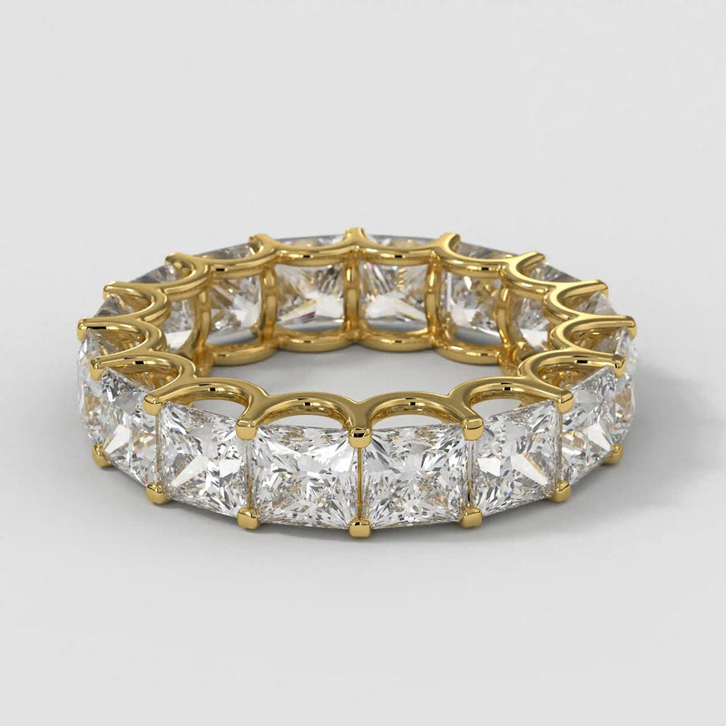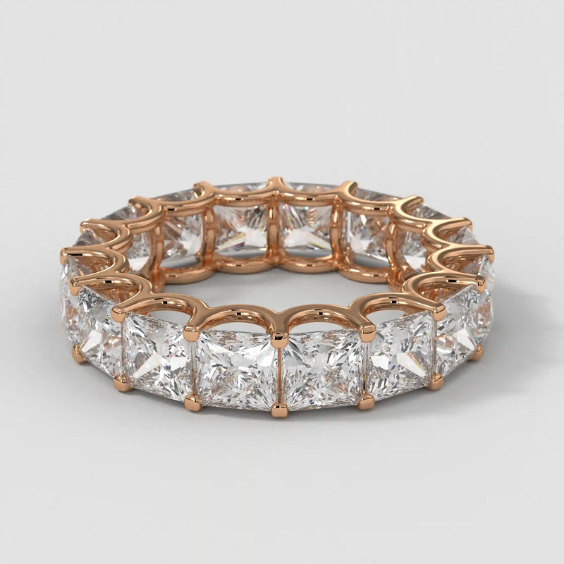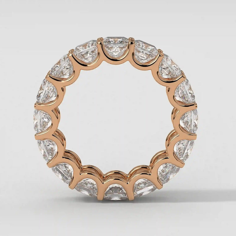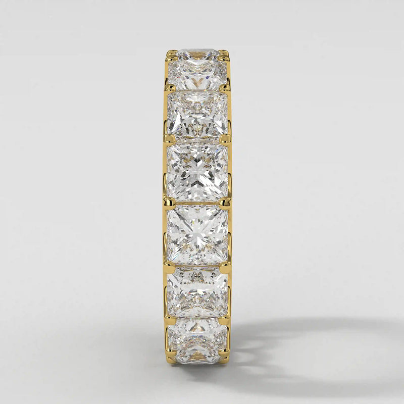 Discover the essence of luxury with The U Prong Princess Eternity Band, a stunning piece that seamlessly blends a luxurious design with a striking princess silhouette.