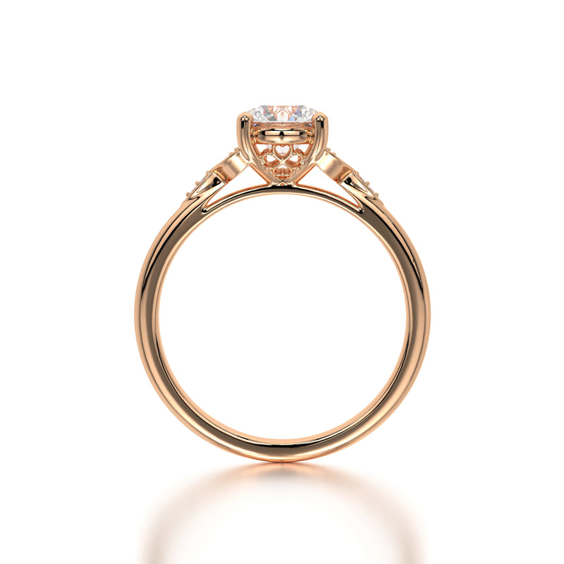 The Vintage Halo is a breathtaking tribute to love, showcasing a mesmerizing round diamond in a vintage setting. Every facet reflects brilliance, making this engagement ring the ultimate symbol of commitment.